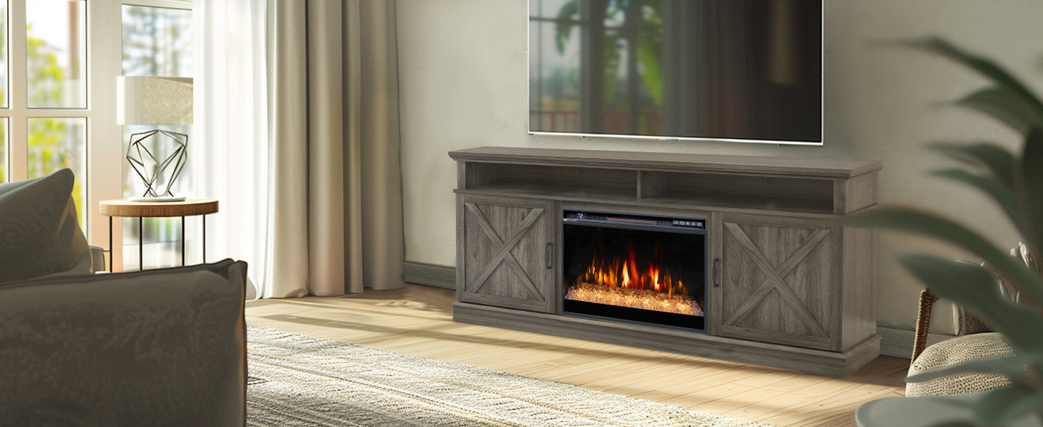 Fireplace TV Stand with 26 inch Electric Fireplace (Crystal)