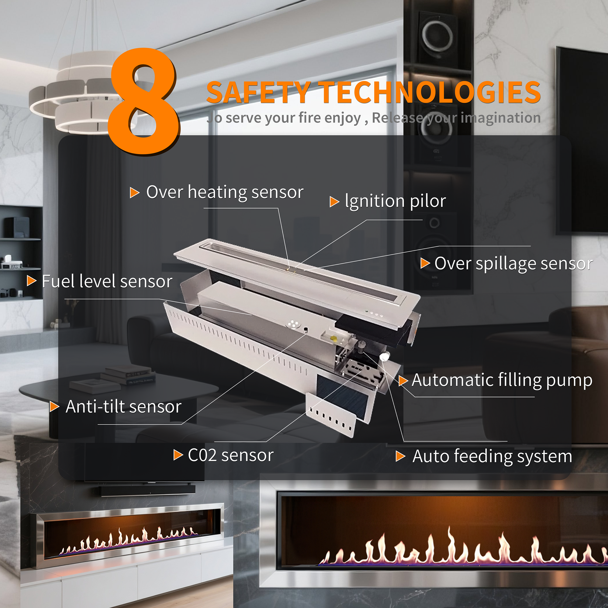 Transform any room into a luxurious and cozy space with our Intelligent Ethanol Fireplace. This ventless burner insert provides the beauty of real, dancing flames without the smoke, ash, or need for a chimney. Made from high-end 3mm stainless steel, it’s the perfect blend of sophisticated design, smart technology, and eco-friendly performance.