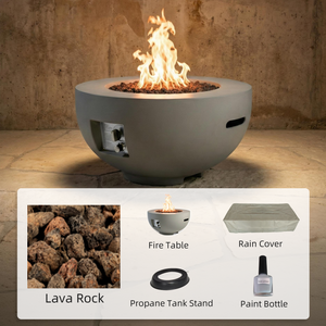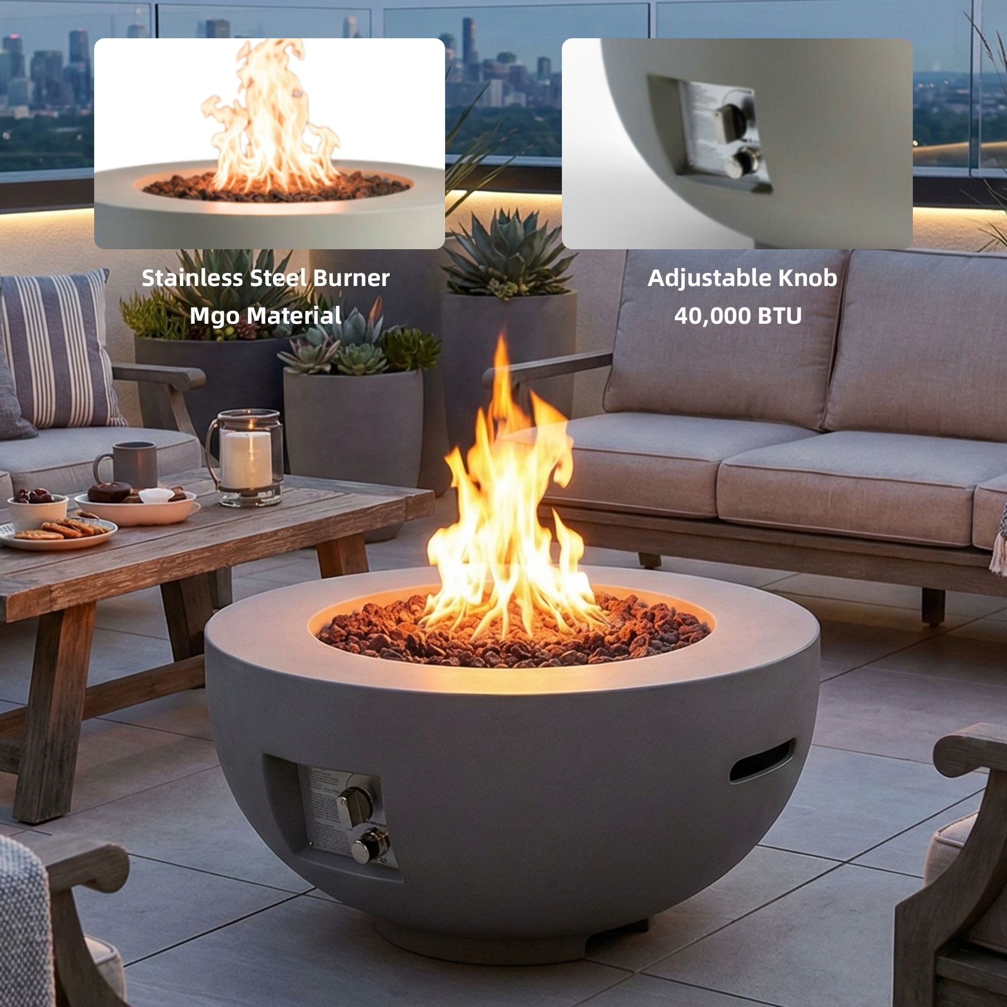 28-Inch Round Propane Fire Pit, Outdoor Gas Fire Bowl with Lava Rocks