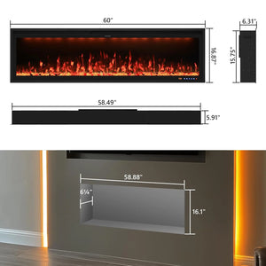 60 Inch Recessed/Wall Mounted Smart Electric Fireplace