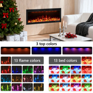 Up to 507 color combinations, including 13 flame colors, 13 ember bed colors, and 3 top light colors, allowing you to customize the ambiance for almost any occasion. Crystal and log decorations can be freely arranged for wall-mounted or built-in installation. Flame and lighting effects can operate independently without heating.