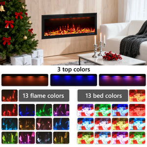 Up to 507 color combinations, including 13 flame colors, 13 ember bed colors, and 3 top light colors, allowing you to customize the ambiance for almost any occasion. Crystal and log decorations can be freely arranged for wall-mounted or built-in installation. Flame and lighting effects can operate independently without heating.