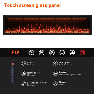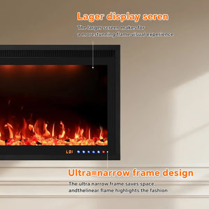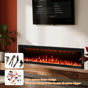Smart Electric Fireplace 74 Inch Recessed/Wall Mounted